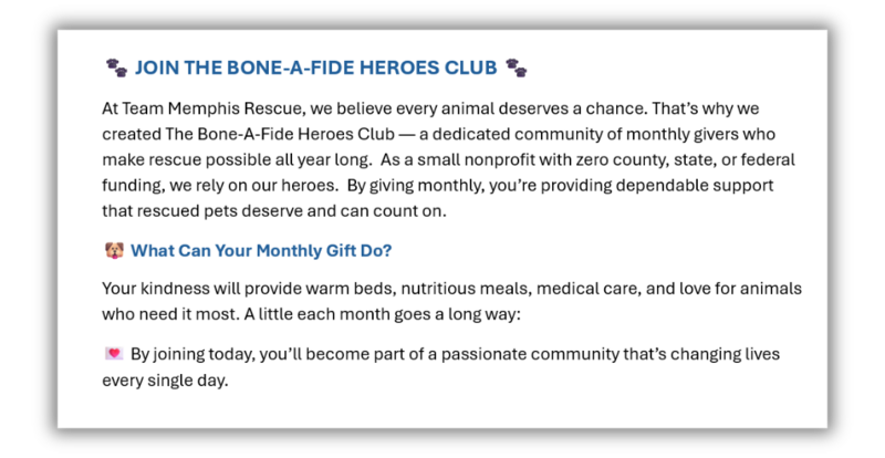 General donations goes toward spay/neutering, heartworm treatment, microchipping, heartworm prevention, vaccinations, food, transportation, boarding, and various other expenses to care for the dogs in our rescue.